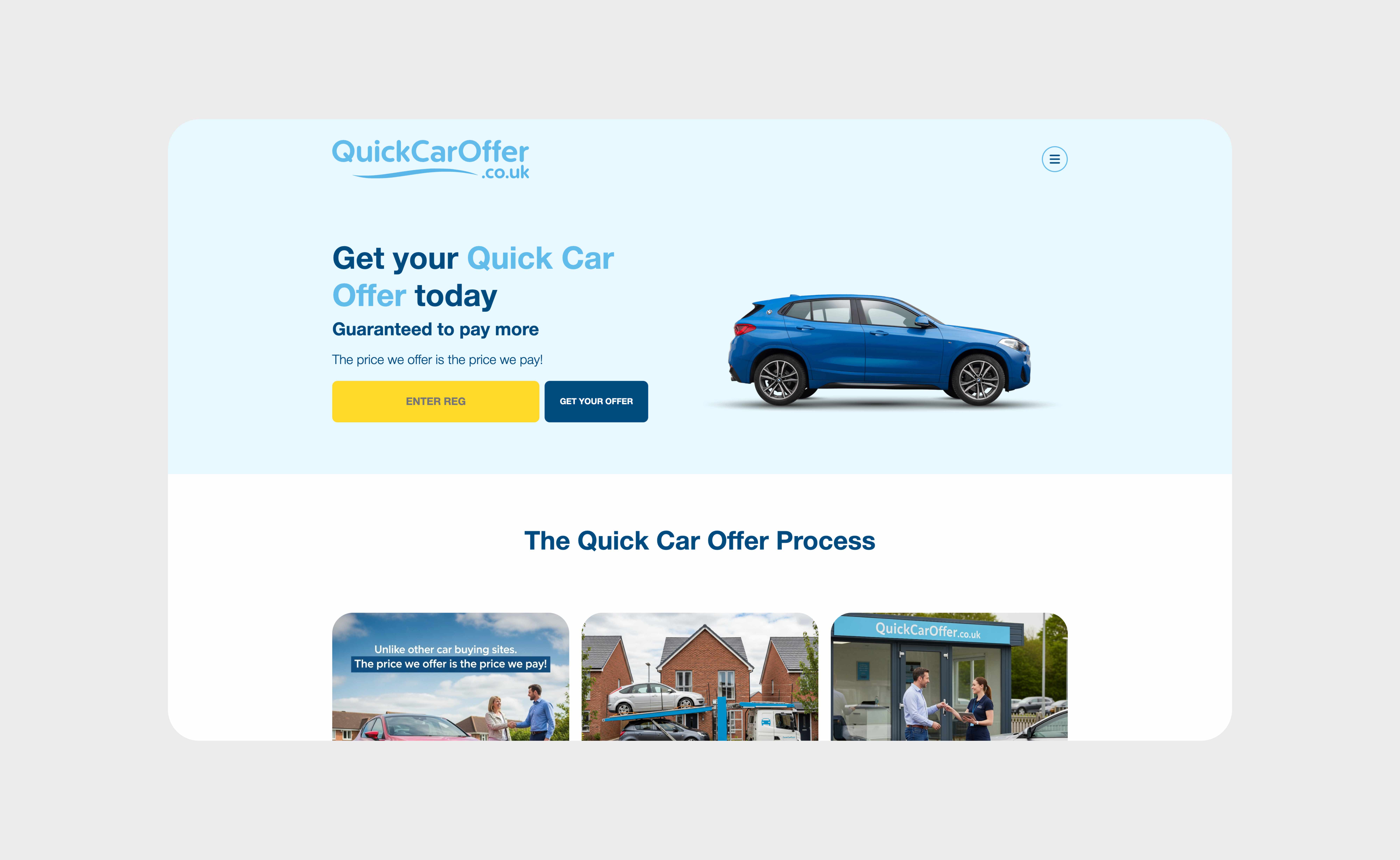 Quick Car Offer flips the script by offering a "what you see is what you get" model. With a focus on honesty and speed, they removed hidden fees and the need for negotiation with Car Buying. We created a minimalistic web experience that allows users to submit their vehicle details and receive a guaranteed offer in a just a few clicks.